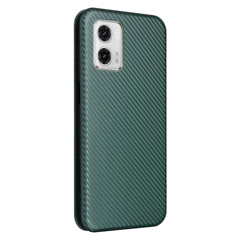 Θήκη τηλεφώνου δερμάτινη, τύπου flip, με υφή ανθρακονημάτων για Motorola Moto G73 (Καφέ)