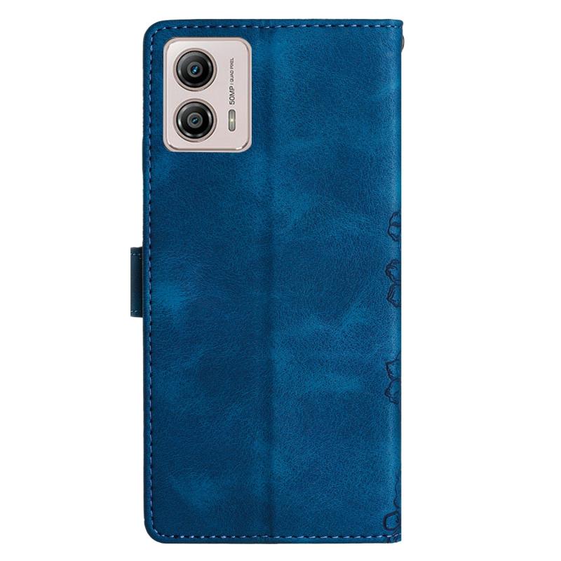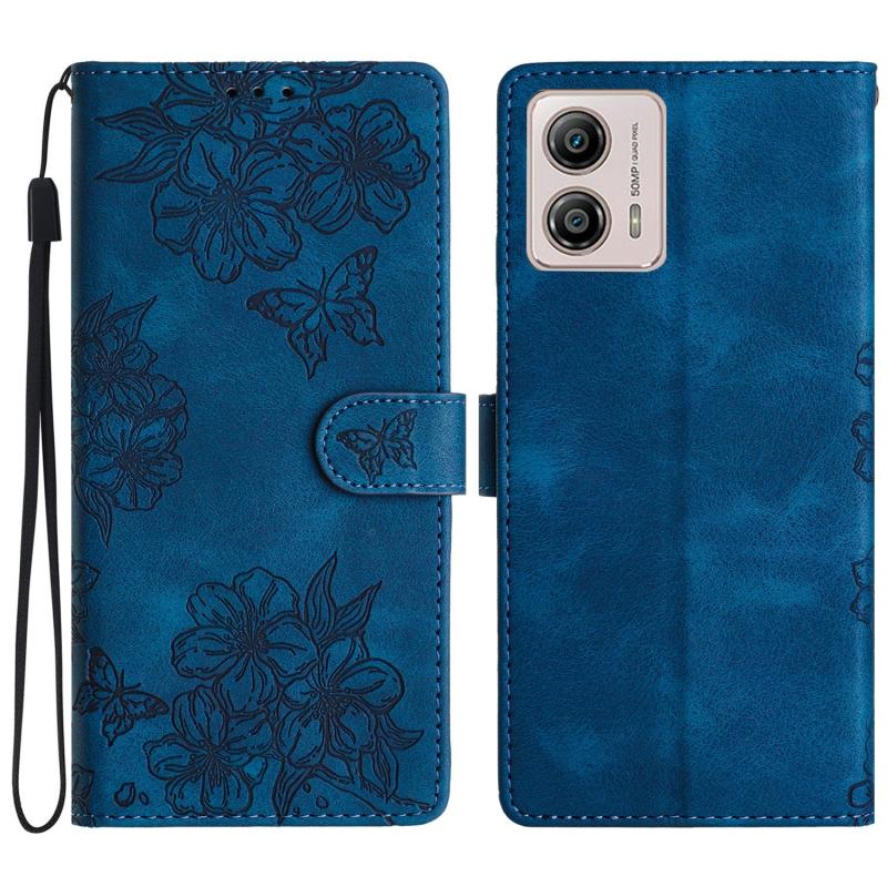 For Motorola Moto G73 Cherry Blossom Butterfly Skin Feel Embossed PU Phone Case(Blue)