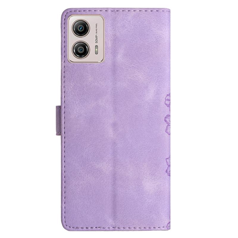 For Motorola Moto G73 Cherry Blossom Butterfly Skin Feel Embossed PU Phone Case(Purple)