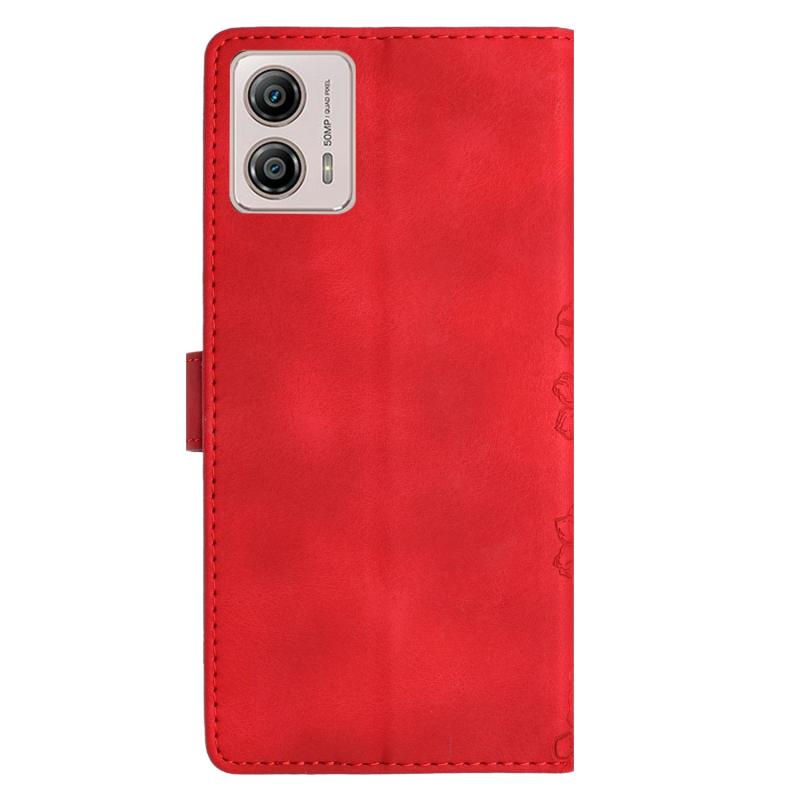 For Motorola Moto G73 Cherry Blossom Butterfly Skin Feel Embossed PU Phone Case(Red)