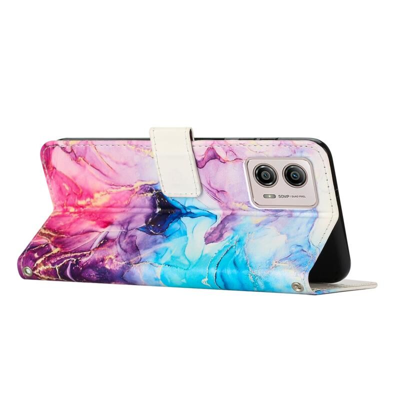 Θήκη κινητού τηλεφώνου Motorola Moto G73 με λουρί, βαμμένη με σχέδιο μαρμάρου, δερμάτινη (Μωβ)