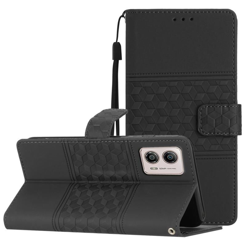 Για Motorola Moto G73 Diamond ανάγλυφο δέρμα αίσθηση δέρμα τηλέφωνο υπόθεση με κορδόνι (μαύρο)