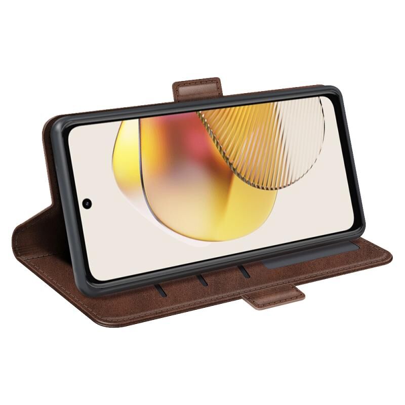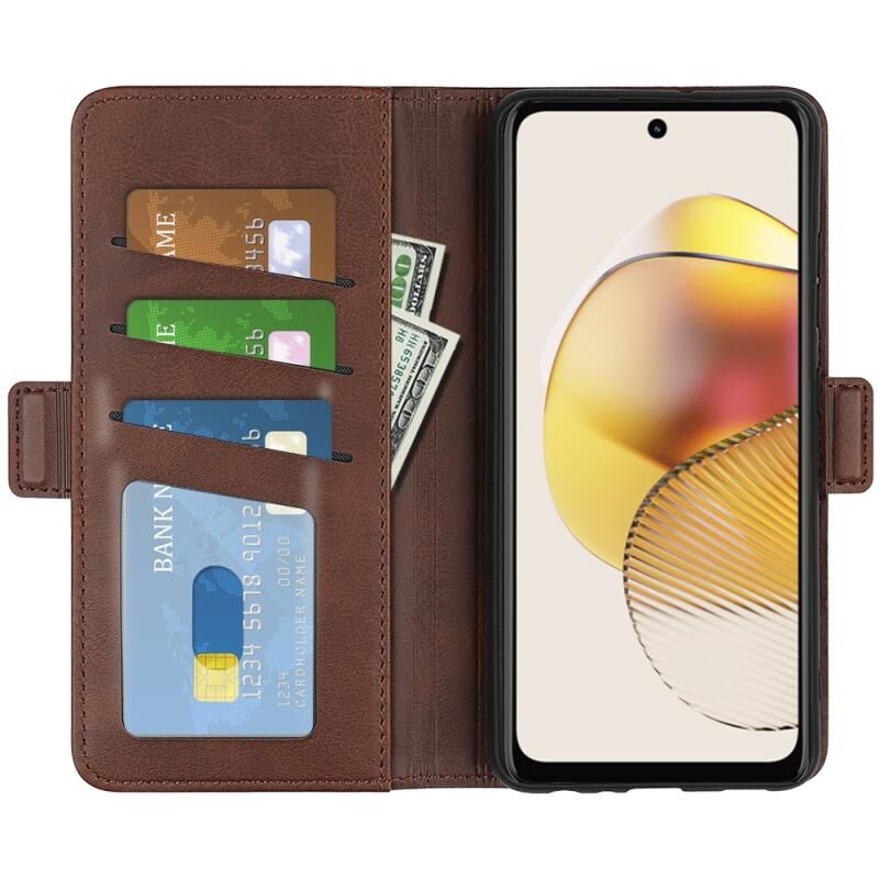 Για Motorola Moto G73 διπλής όψης μαγνητική πόρπη οριζόντια Flip δερμάτινη θήκη τηλεφώνου (Καφέ)