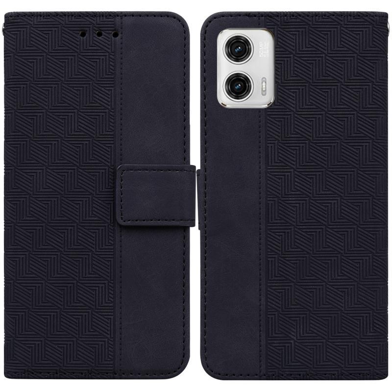 Θήκη τηλεφώνου δερμάτινη με ανάγλυφο γεωμετρικό σχέδιο για Motorola Moto G73 (Μαύρο)