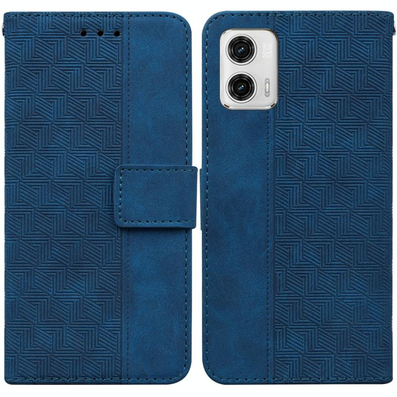 Θήκη τηλεφώνου δερμάτινη με ανάγλυφο γεωμετρικό σχέδιο για Motorola Moto G73 (Μπλε)