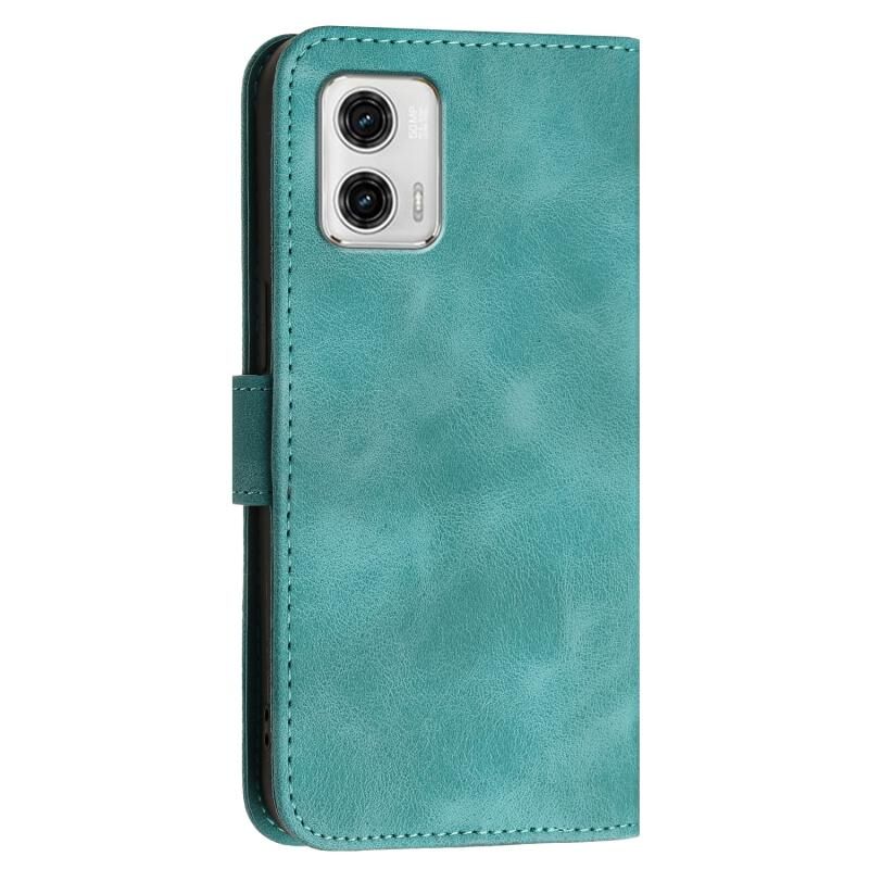 Θήκη κινητού τηλεφώνου δερμάτινη με ανάγλυφο σχέδιο "Grid Butterfly" για Motorola Moto G73 με κορδόνι (Σκούρο Μπλε)