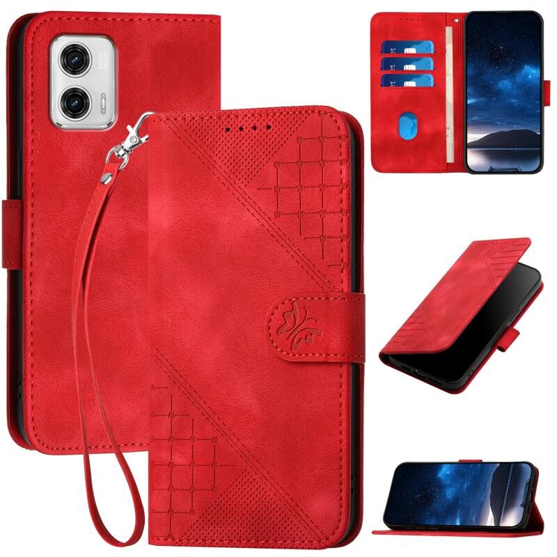 Θήκη κινητού τηλεφώνου δερμάτινη με ανάγλυφο σχέδιο "Grid Butterfly" για Motorola Moto G73 με κορδόνι (Σκούρο Μπλε)