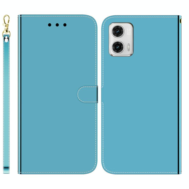 Θήκη τηλεφώνου δερμάτινη, οριζόντια αναδιπλούμενη, με καθρεφτισμένη επιφάνεια για Motorola Moto G73 (Μπλε)
