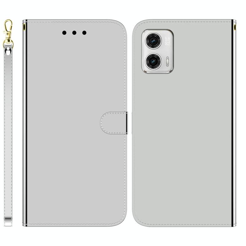 Θήκη τηλεφώνου δερμάτινη, οριζόντια αναδιπλούμενη, με καθρεφτισμένη επιφάνεια για Motorola Moto G73 (Ασημί)