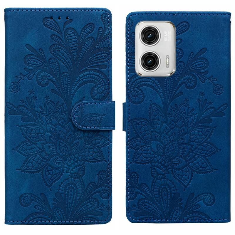 Θήκη κινητού τηλεφώνου Motorola Moto G73 με δαντελένιο λουλουδάτο ανάγλυφο, μαγνητικό κούμπωμα και λουρί καρπού (Πράσινο)