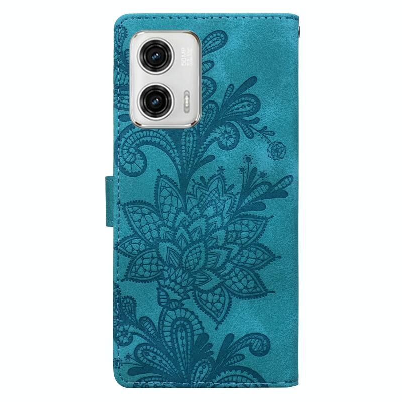 Θήκη κινητού τηλεφώνου Motorola Moto G73 με δαντελένιο λουλουδάτο ανάγλυφο, μαγνητικό κούμπωμα και λουρί καρπού (Πράσινο)