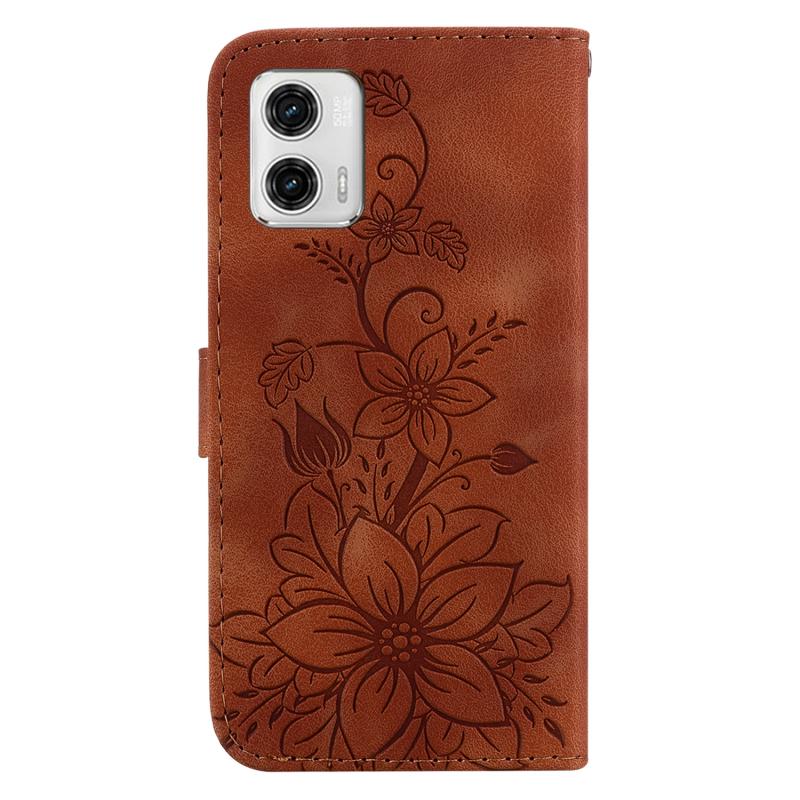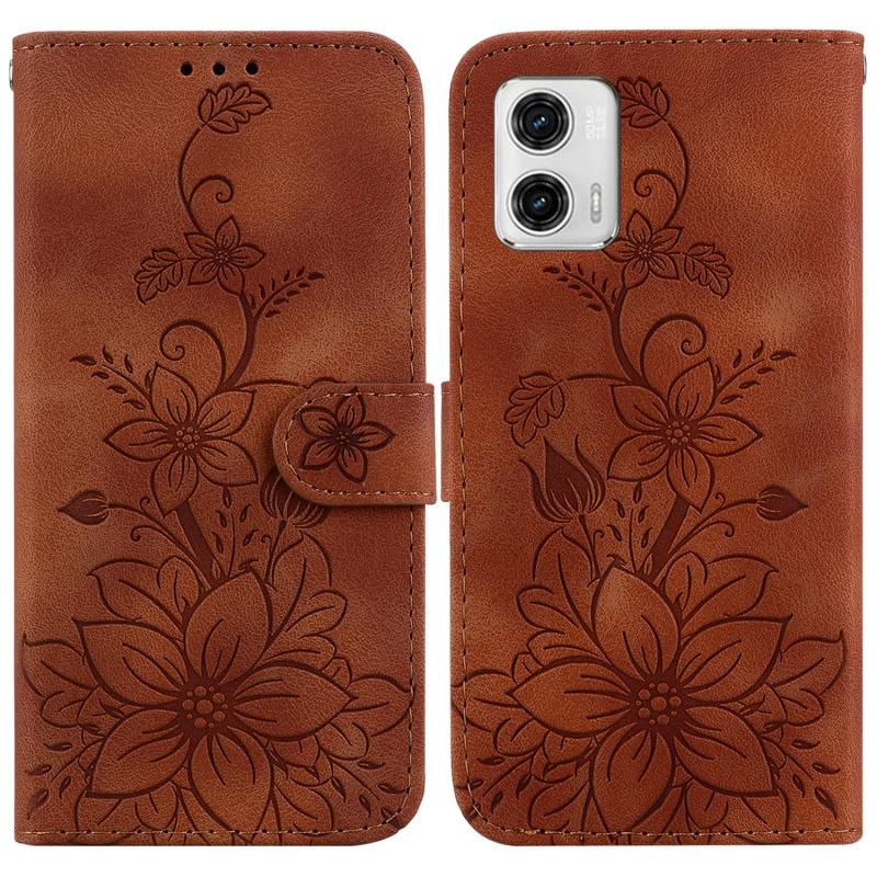 For Motorola Moto G73 Lily Embossed Leather Phone Case(Brown)