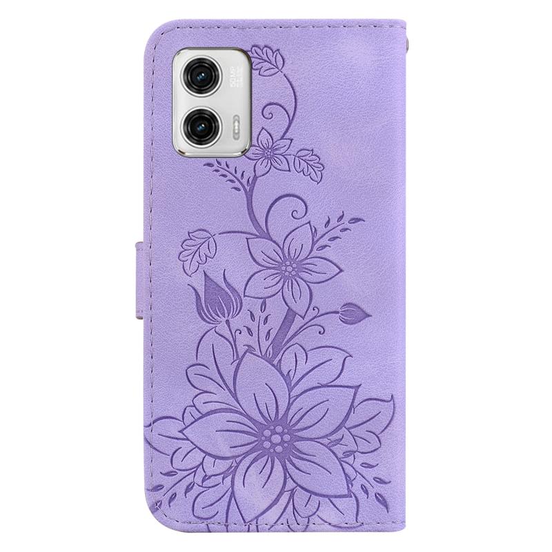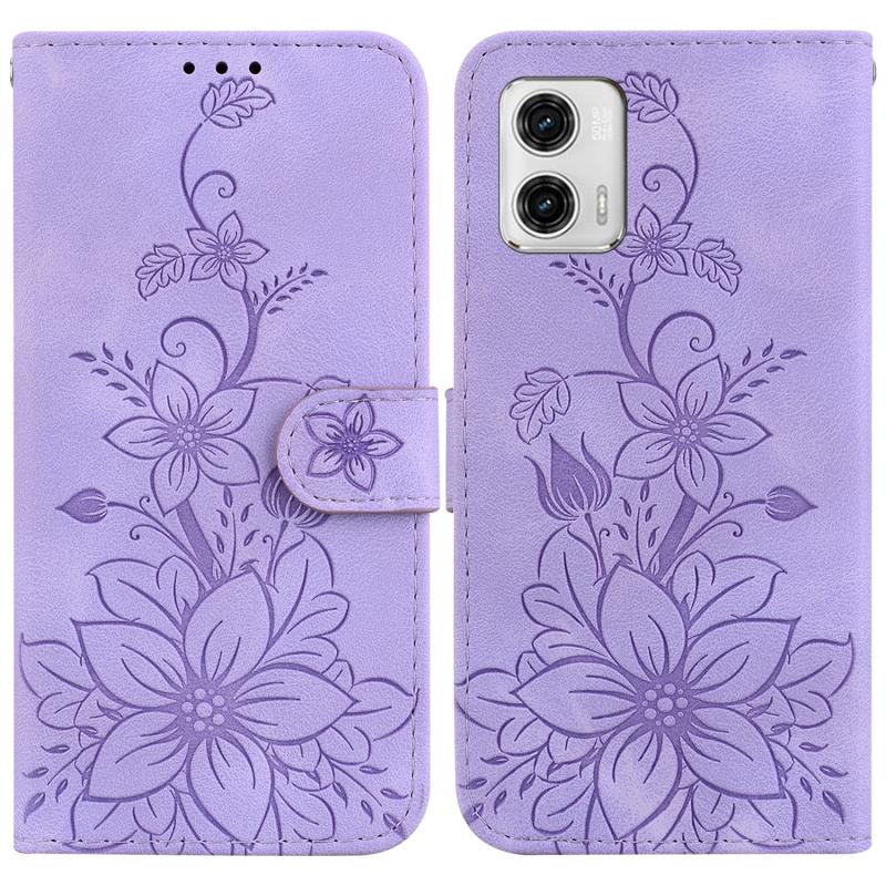 For Motorola Moto G73 Lily Embossed Leather Phone Case(Purple)