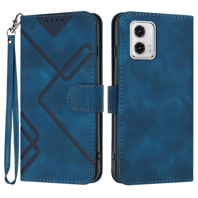 Θήκη κινητού τηλεφώνου Motorola Moto G73 με υφή δέρματος και μοτίβο γραμμών (Βασιλικό μπλε)