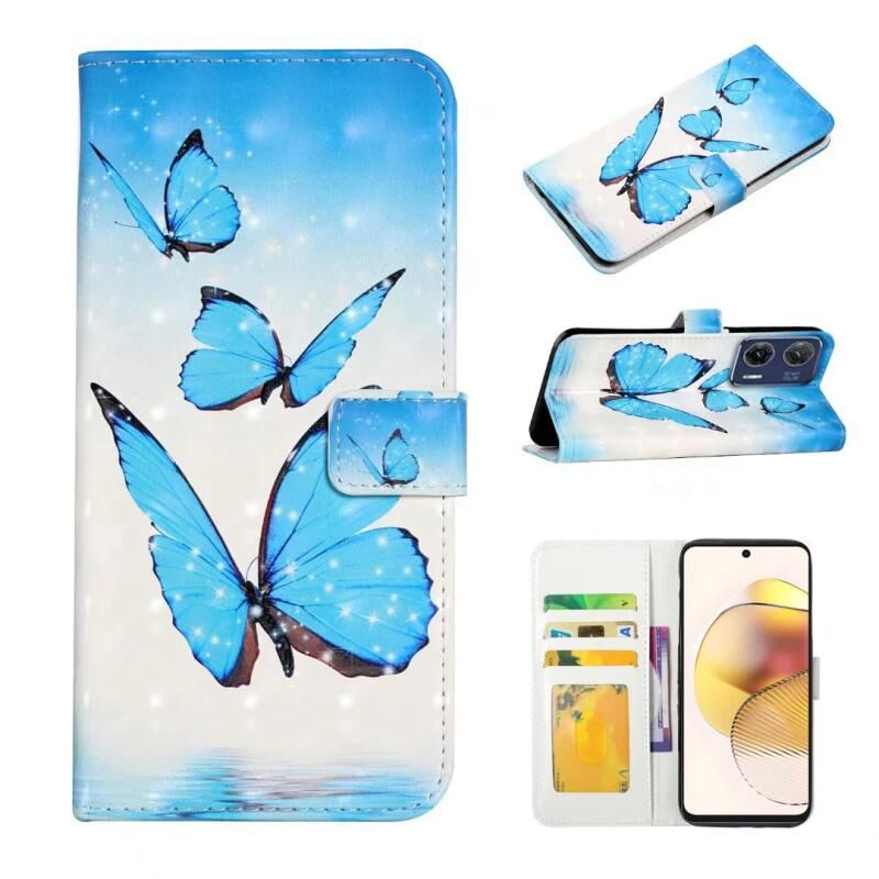 Θήκη τηλεφώνου δερμάτινη με ανάγλυφο σχέδιο 3D για Motorola Moto G73 (3 Πεταλούδες)