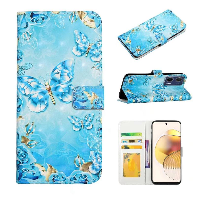 For Motorola Moto G73 Oil Embossed 3D Drawing Leather Phone Case(Blue Butterflies)