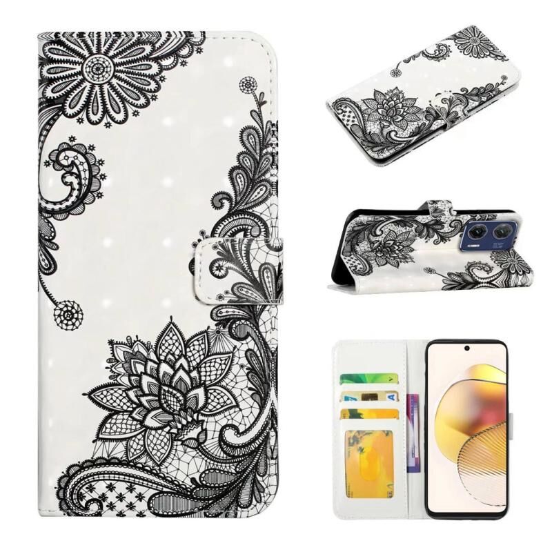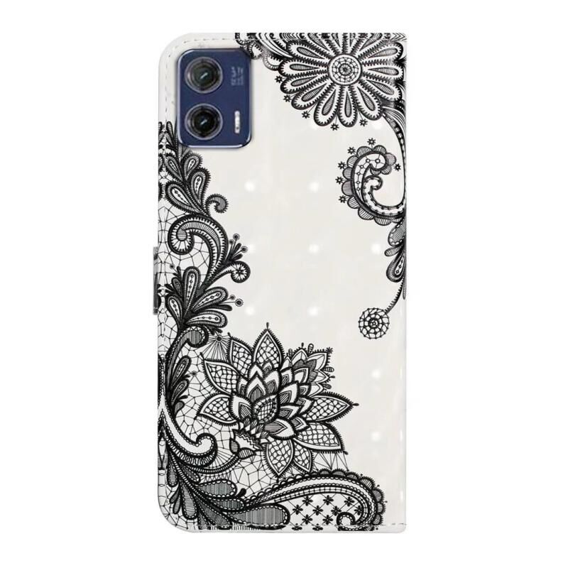 Θήκη τηλεφώνου δερμάτινη με ανάγλυφο σχέδιο λαδιού 3D για Motorola Moto G73 (Λουλούδι Δαντέλας)