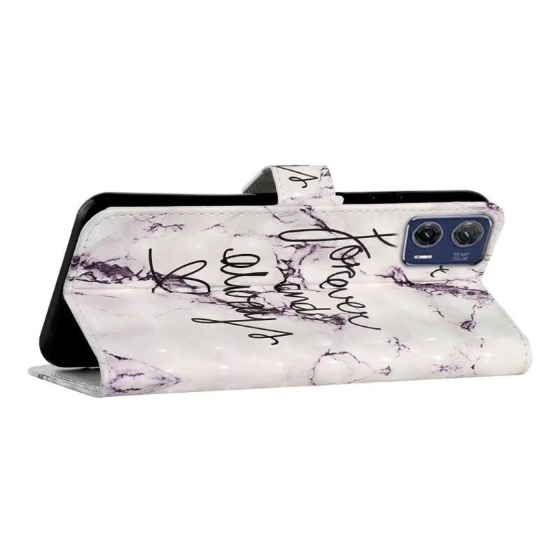 Θήκη τηλεφώνου δερμάτινη με ανάγλυφο σχέδιο 3D για Motorola Moto G73 (Μάρμαρο με λέξεις)