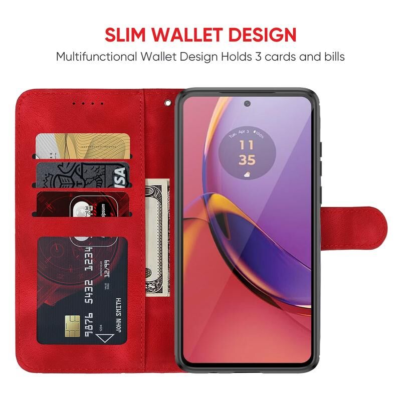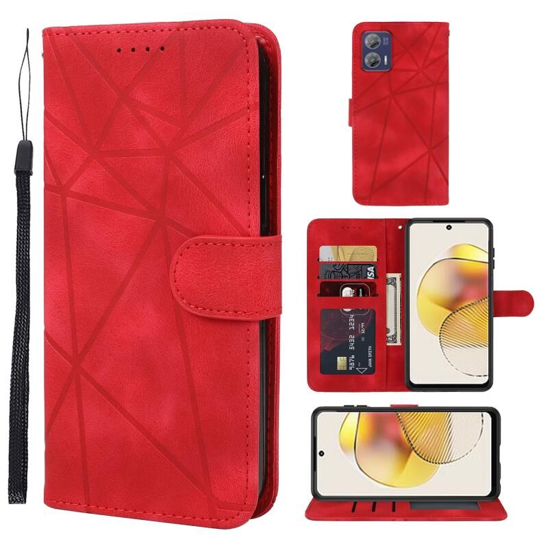 Για Motorola Moto G73 Skin Feel γεωμετρικές γραμμές δερμάτινη θήκη τηλεφώνου (κόκκινο)