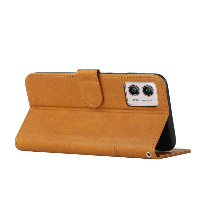 Θήκη κινητού τηλεφώνου από δέρμα με υφή μοσχαριού και αγκράφα για Motorola Moto G73 (Κίτρινο)