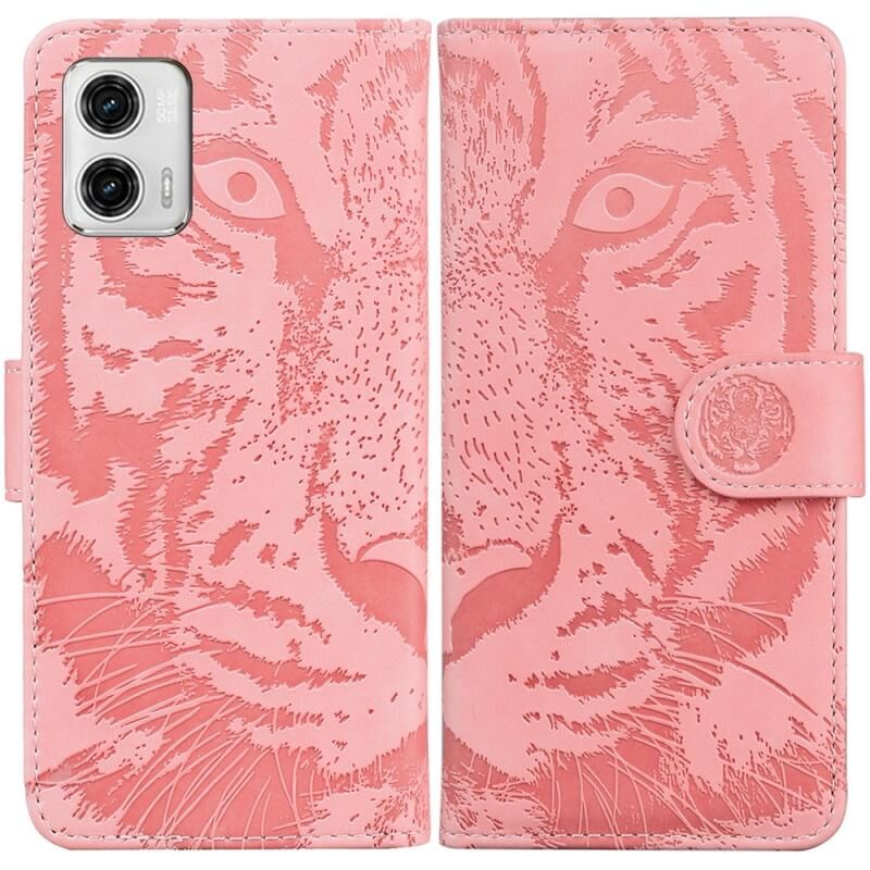 Θήκη τηλεφώνου δερμάτινη με ανάγλυφο μοτίβο τίγρης για Motorola Moto G73 (ρόζ)