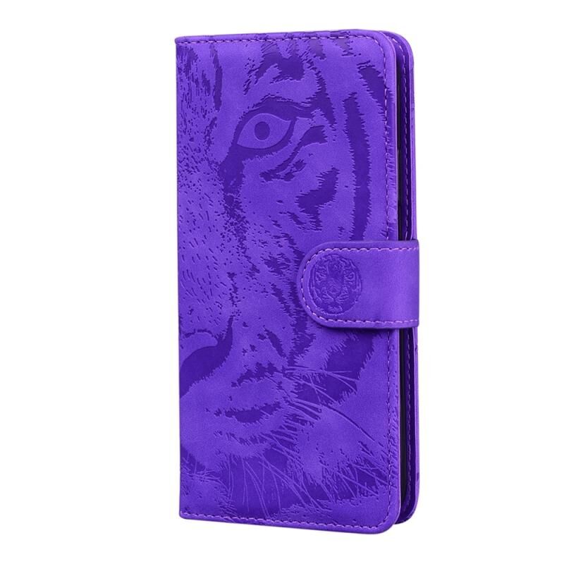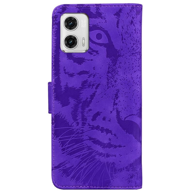 Θήκη τηλεφώνου δερμάτινη με ανάγλυφο μοτίβο τίγρης για Motorola Moto G73 (Μωβ)
