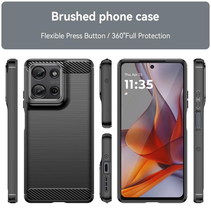 Θήκη τηλεφώνου TPU με υφή ανθρακονήματος βουρτσισμένου για Motorola Moto G75 5G (Μαύρο)