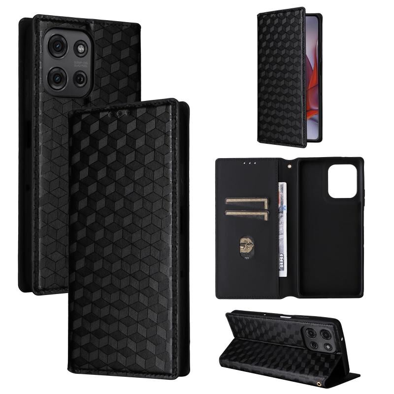Θήκη τηλεφώνου από δέρμα με υφή Cubic Grid για Motorola Moto G75 5G (Μαύρο)