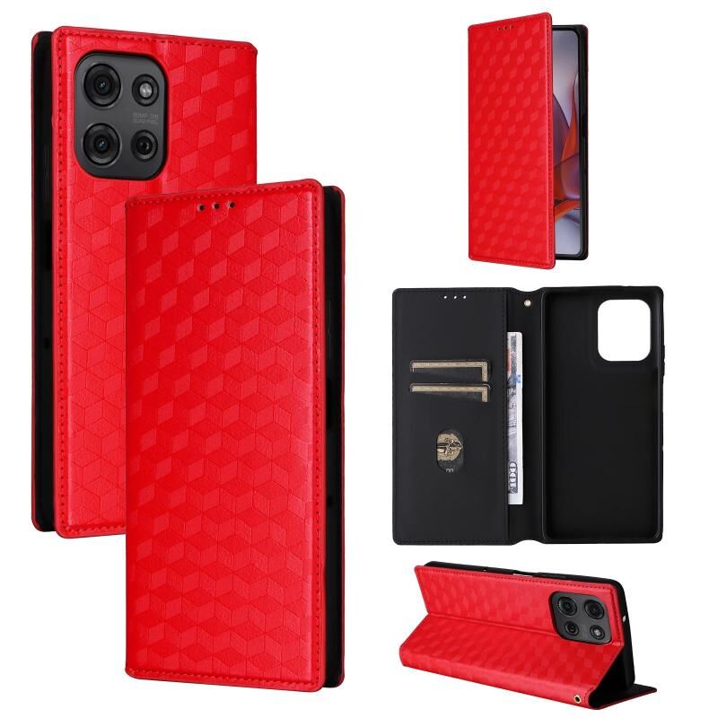 Θήκη τηλεφώνου από δέρμα με υφή Cubic Grid για Motorola Moto G75 5G (Μαύρο)
