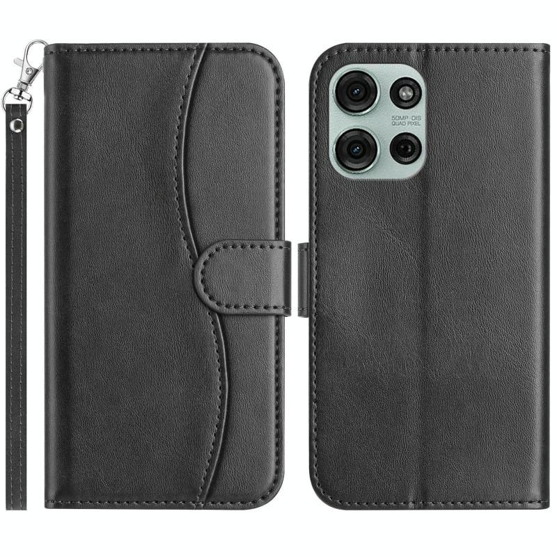 For Motorola Moto G75 5G Dual-Folded S-shape Leather Phone Case(Black)