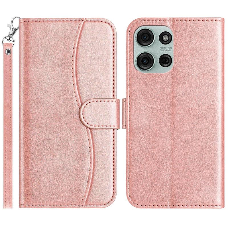 For Motorola Moto G75 5G Dual-Folded S-shape Leather Phone Case(Rose Gold)