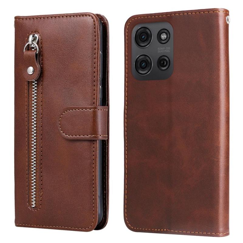 For Motorola Moto G75 5G Fashion Calf Texture Zipper Leather Phone Case(Brown)