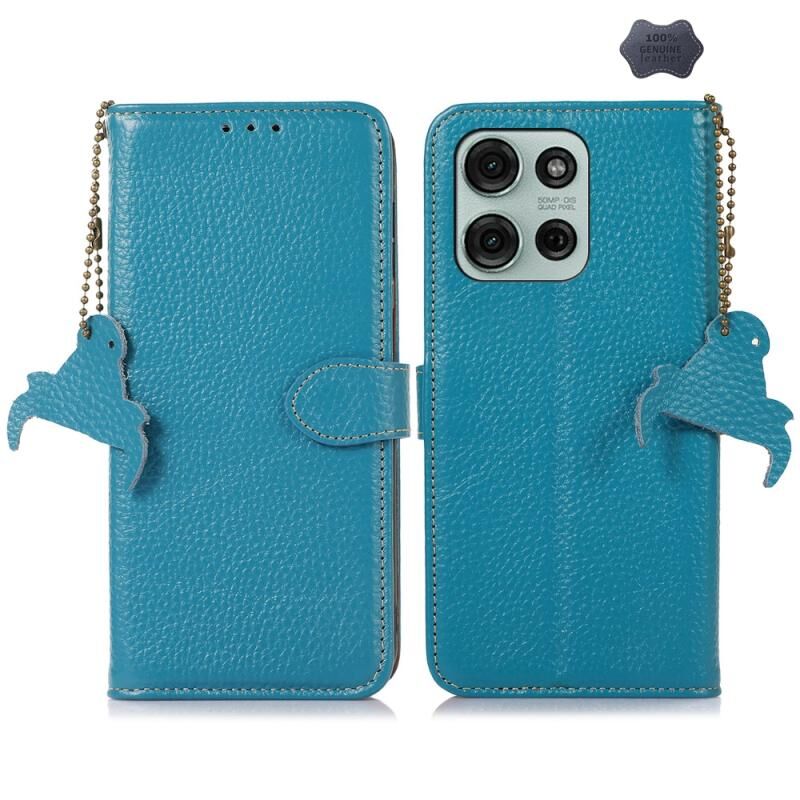 Θήκη τηλεφώνου από γνήσιο δέρμα με υφή λύτσι για Motorola Moto G75 5G (Πράσινο)