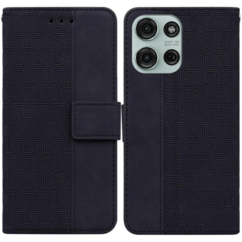 Για Motorola Moto G75 5G Γεωμετρική ανάγλυφη δερμάτινη θήκη τηλεφώνου (Μαύρο)