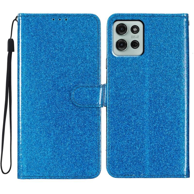 Θήκη τηλεφώνου από δέρμα με γκλίτερ σε σκόνη για Motorola Moto G75 5G (Μπλε)
