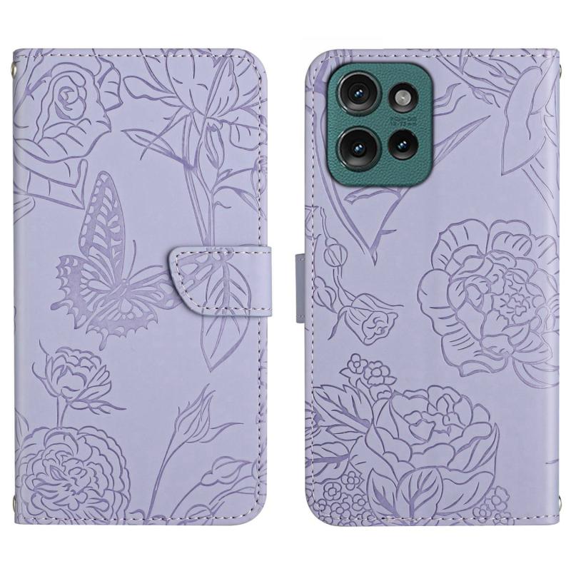 For Motorola Moto G75 5G HT03 Skin Feel Butterfly Embossed Flip Leather Phone Case(Purple)