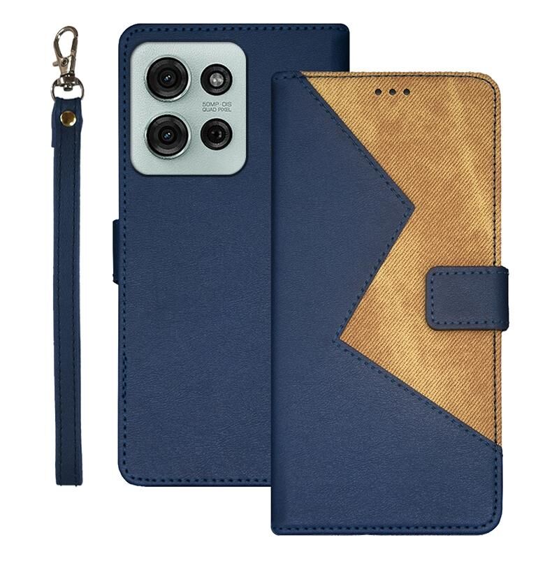Για Motorola Moto G75 5G idewei Δερμάτινη Θήκη Τηλεφώνου Διχρωμίας (Μπλε) (Μπλε)