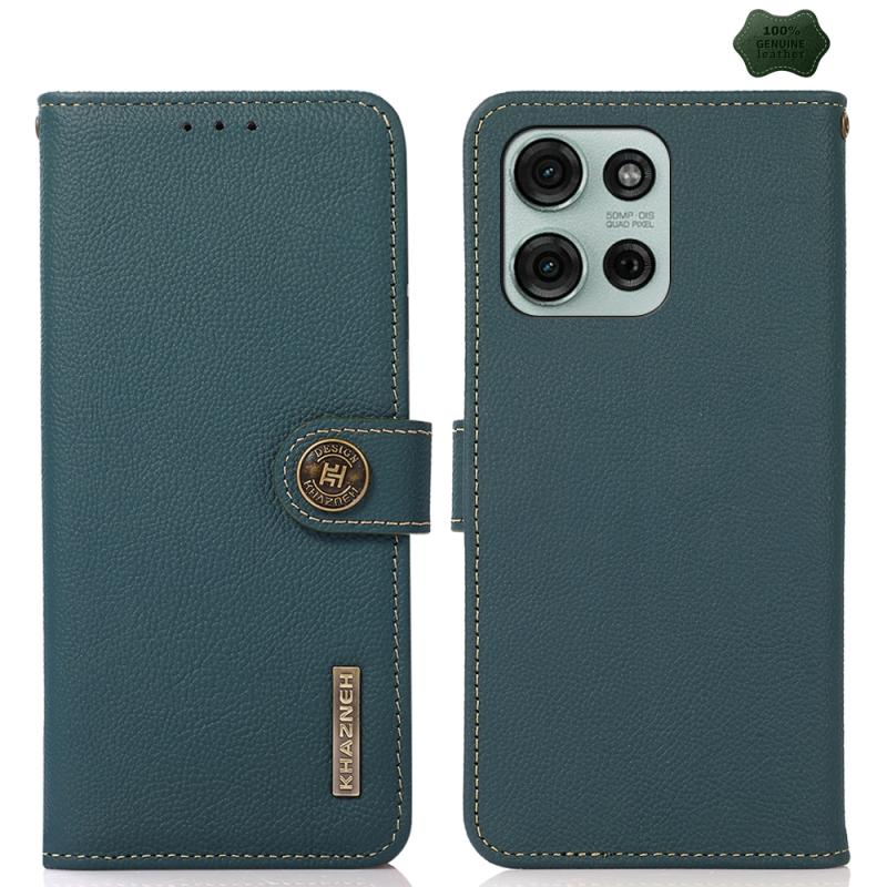 For Motorola Moto G75 5G KHAZNEH Custer Genuine Leather RFID Phone Case(Green)