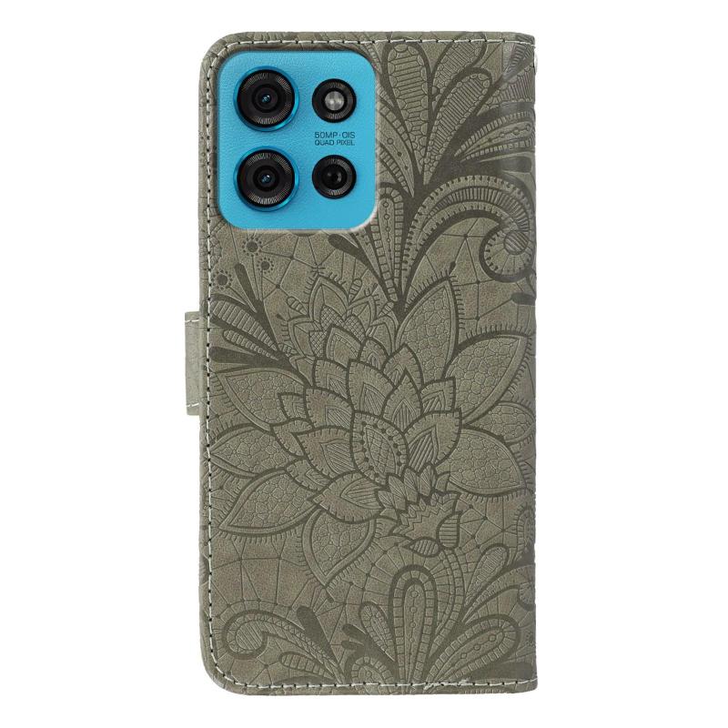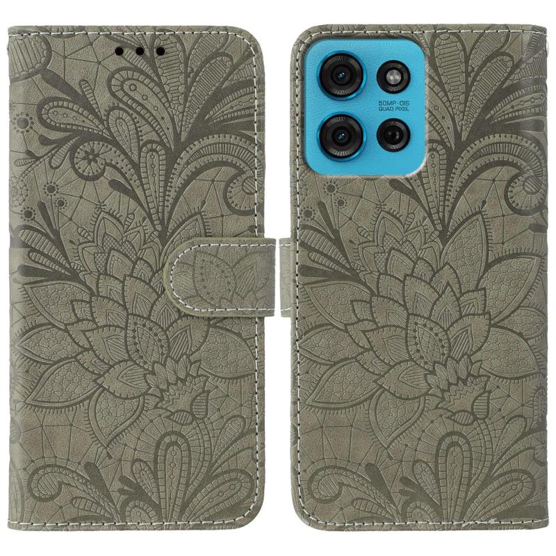 For Motorola Moto G75 5G Lace Flower Embossing Flip Leather Phone Case(Grey)