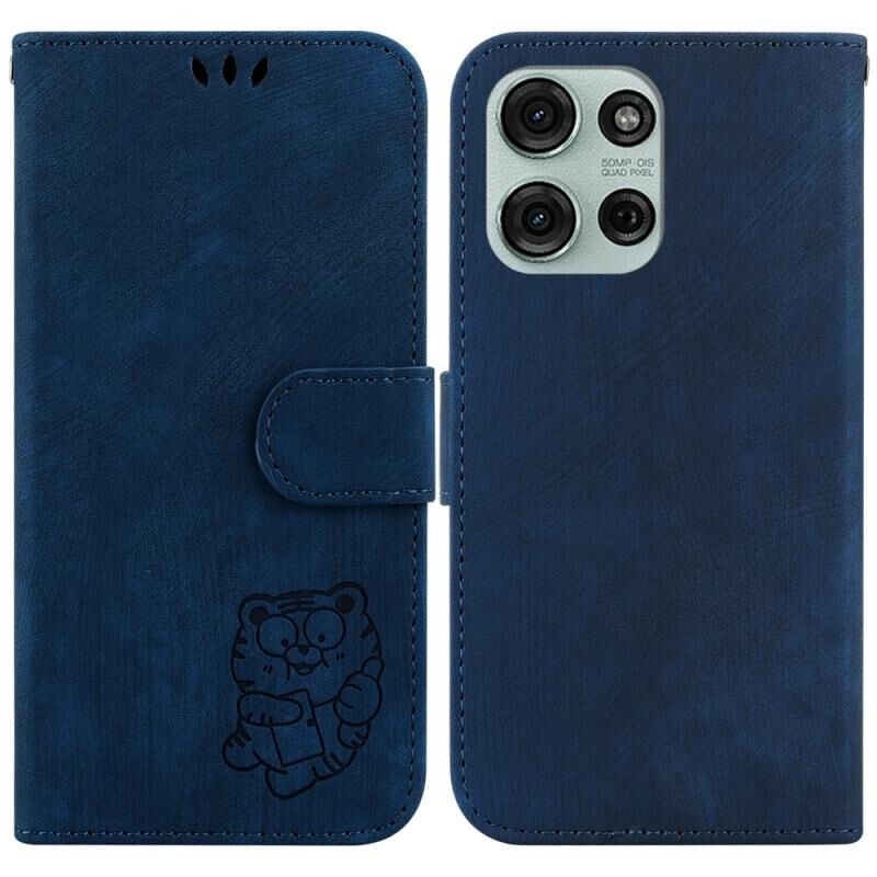 Θήκη τηλεφώνου από ανάγλυφο δέρμα για Motorola Moto G75 5G Little Tiger (Πράσινο)