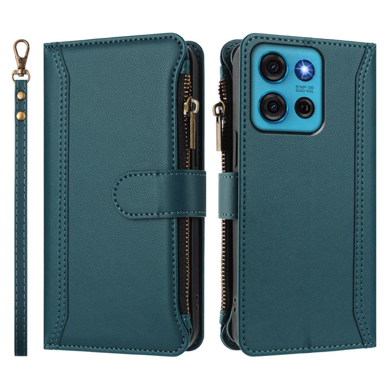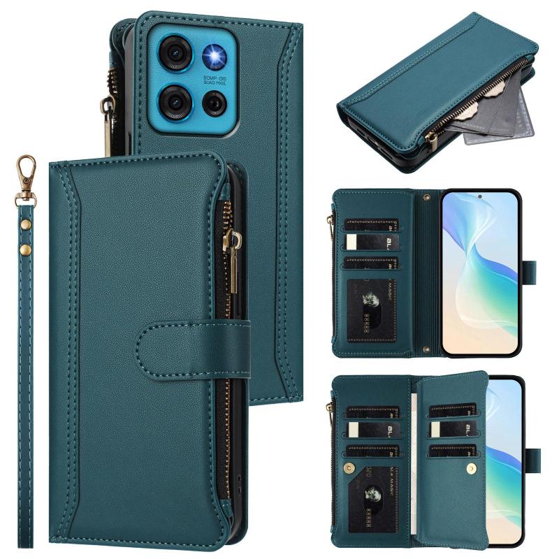 Για Motorola Moto G75 5G Μαγνητικό Κλείσιμο 9 Θήκες Κάρτας Δερμάτινη Θήκη με Φερμουάρ και Λουρί Χεριού (Σκούρο Μπλε)