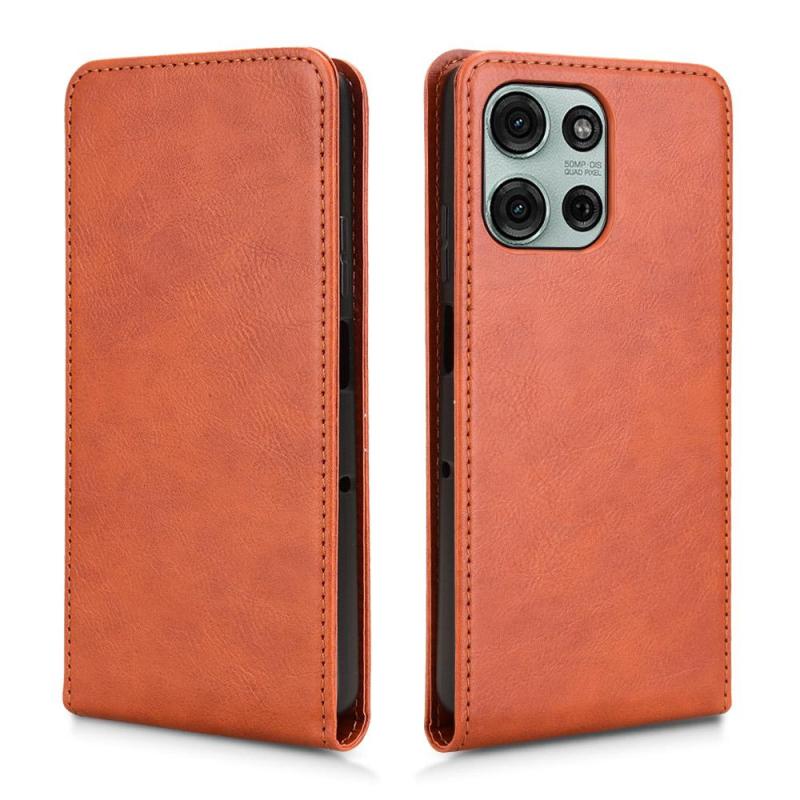 For Motorola Moto G75 5G Magnetic Vertical Flip Leather Phone Case(Brown)