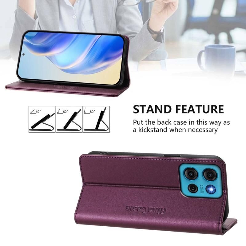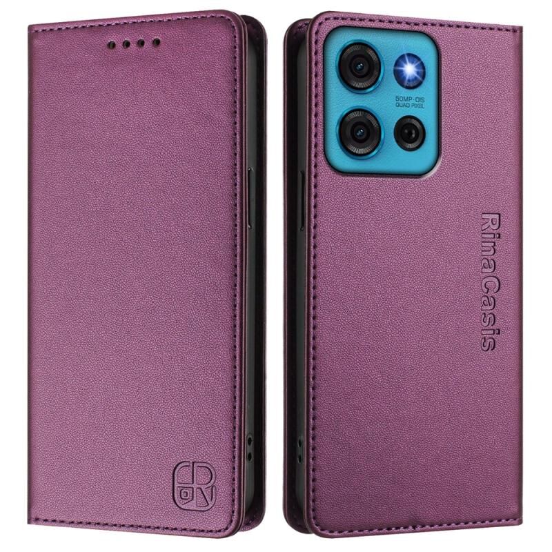 Θήκη τηλεφώνου δερμάτινη με μαγνητική απορρόφηση και διπλή πτυχή για Motorola Moto G75 5G RC01 (Βιολετί)