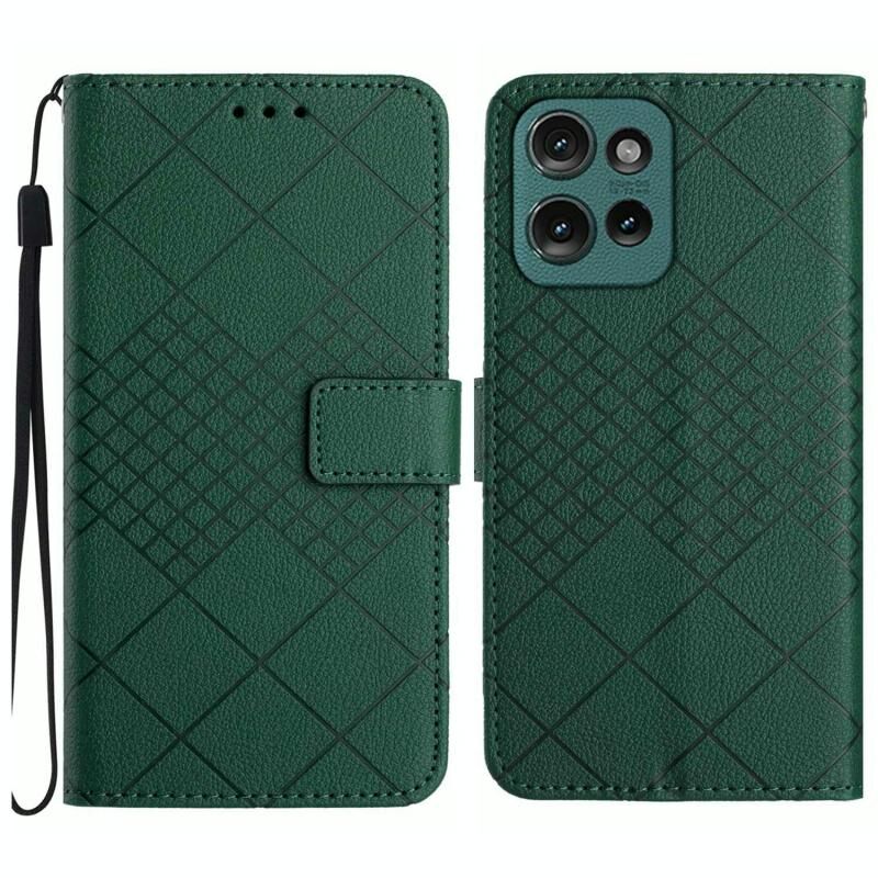 Για Motorola Moto G75 5G Rhombic Grid Texture Δερμάτινη θήκη τηλεφώνου (πράσινο)