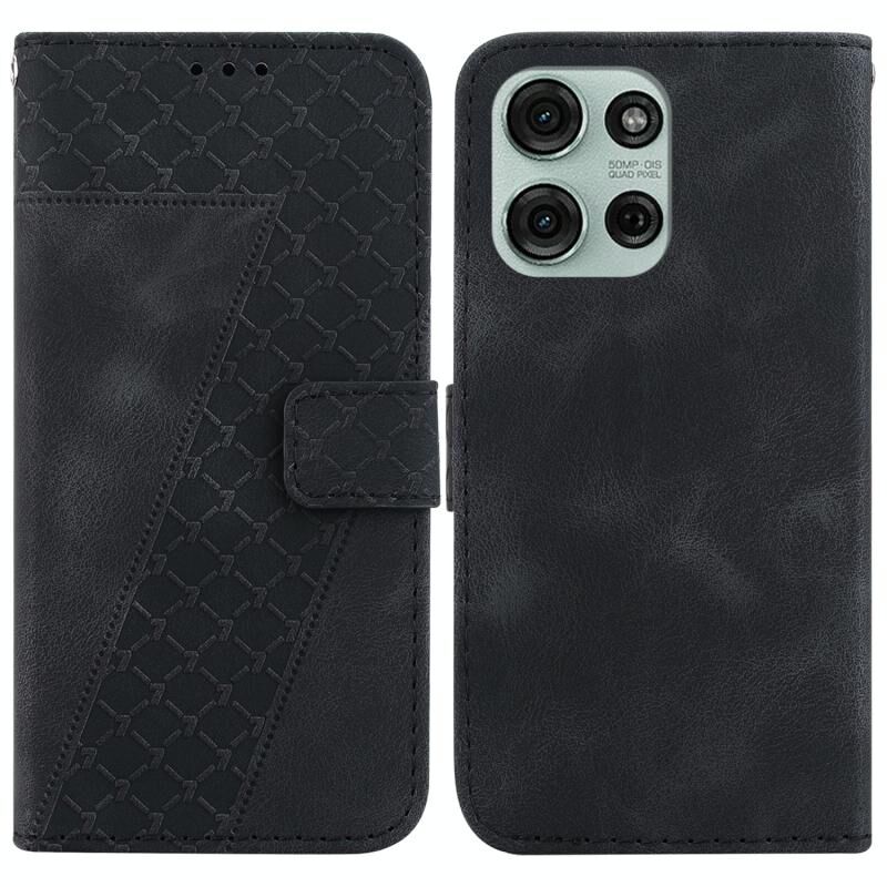 Θήκη τηλεφώνου από δέρμα με ανάγλυφο σχέδιο σε σχήμα επτά για Motorola Moto G75 5G (Πράσινο)