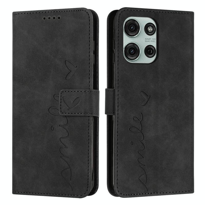 Για Motorola Moto G75 Skin Feel Heart ανάγλυφη δερμάτινη θήκη τηλεφώνου με μακρύ κορδόνι (Μαύρο)