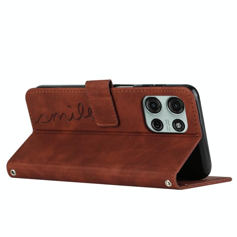 Για Motorola Moto G75 Skin Feel Heart ανάγλυφη δερμάτινη θήκη τηλεφώνου με μακρύ κορδόνι (καφέ)
