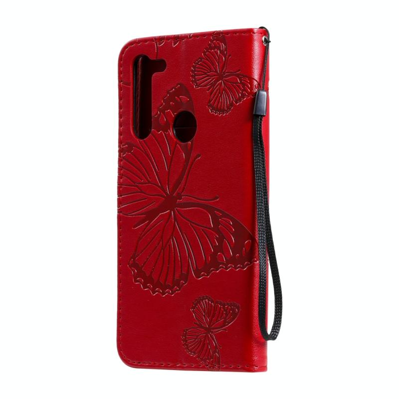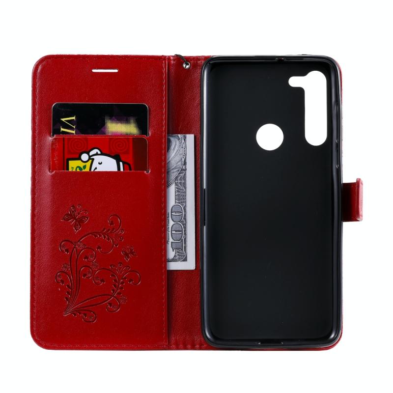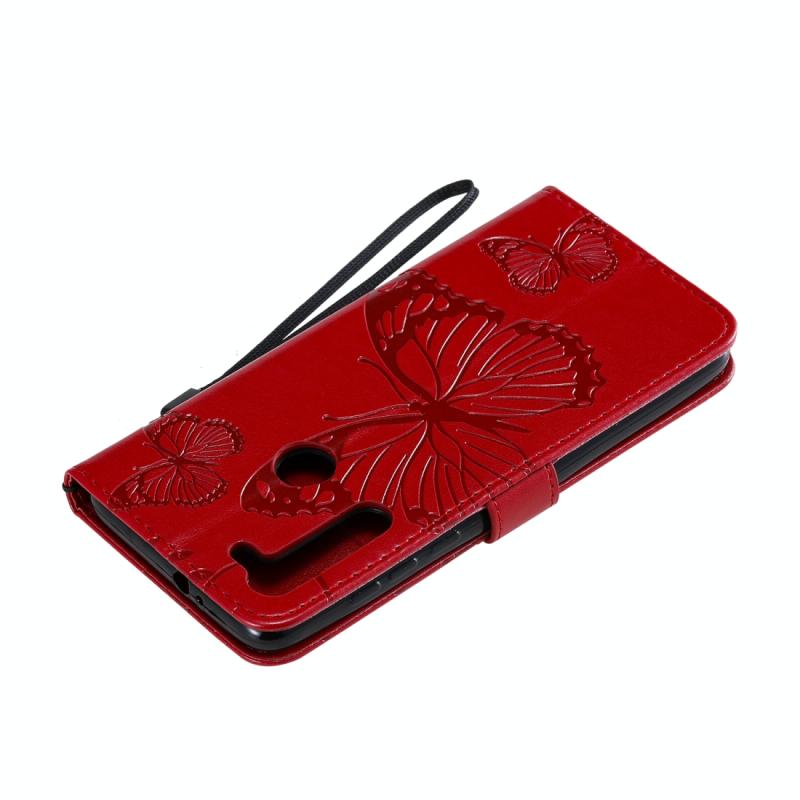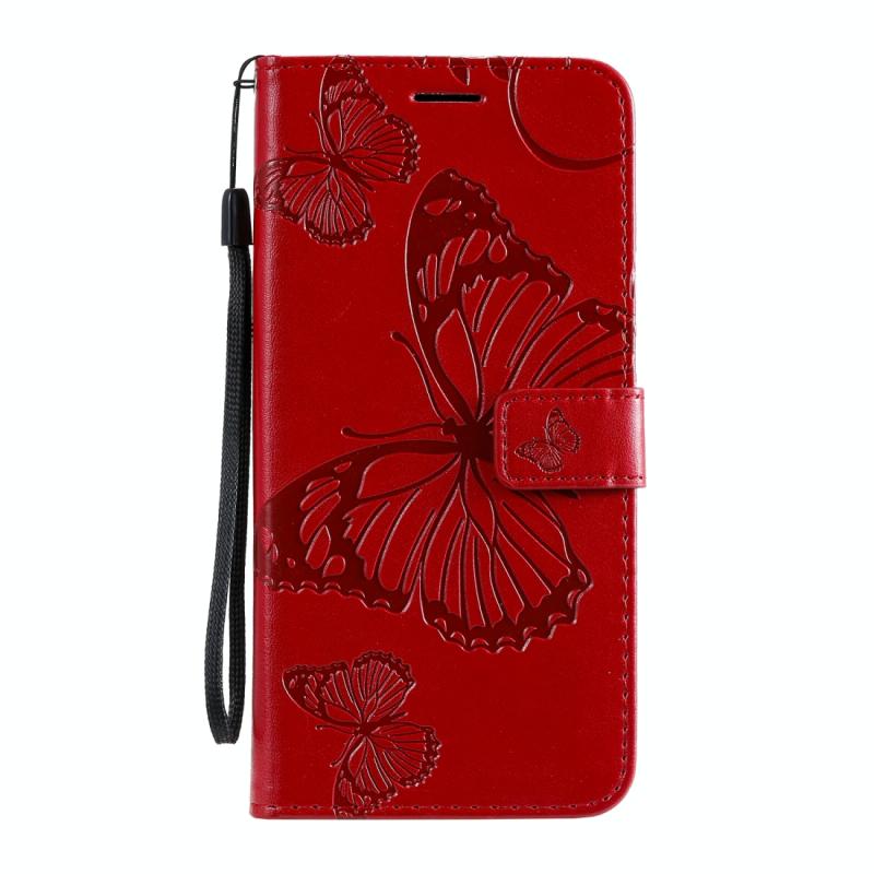 Θήκη δέρματος οριζόντιας αναδίπλωσης για Motorola Moto G8 με ανάγλυφο σχέδιο 3D πεταλούδων, με βάση, θήκη καρτών, πορτοφόλι και κορδόνι (Χρυσό Ρόδινο). (Κόκκινο)