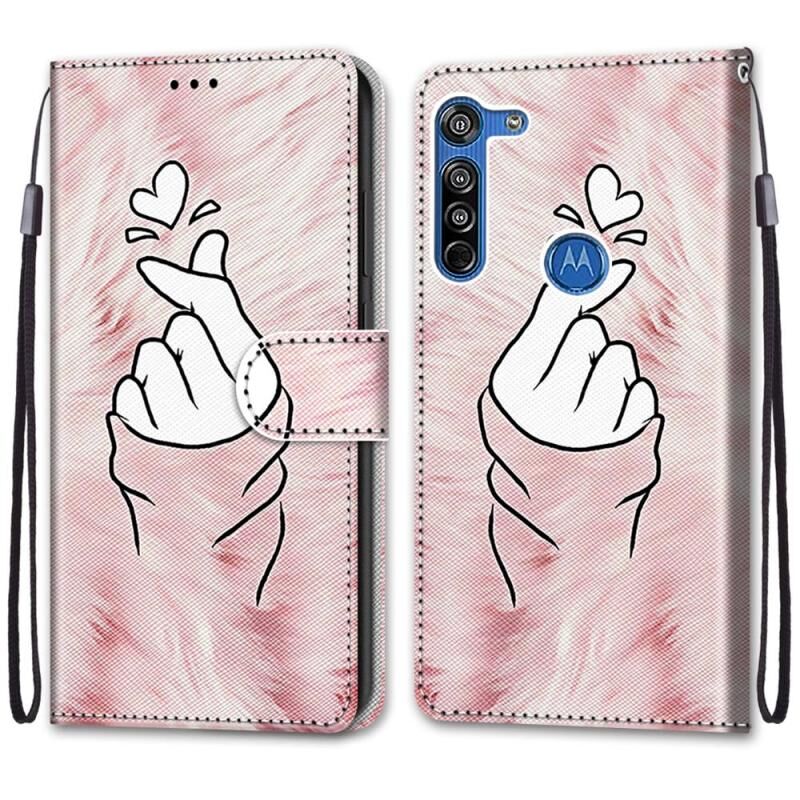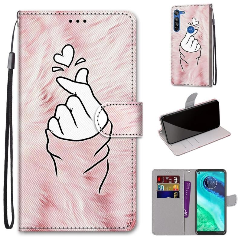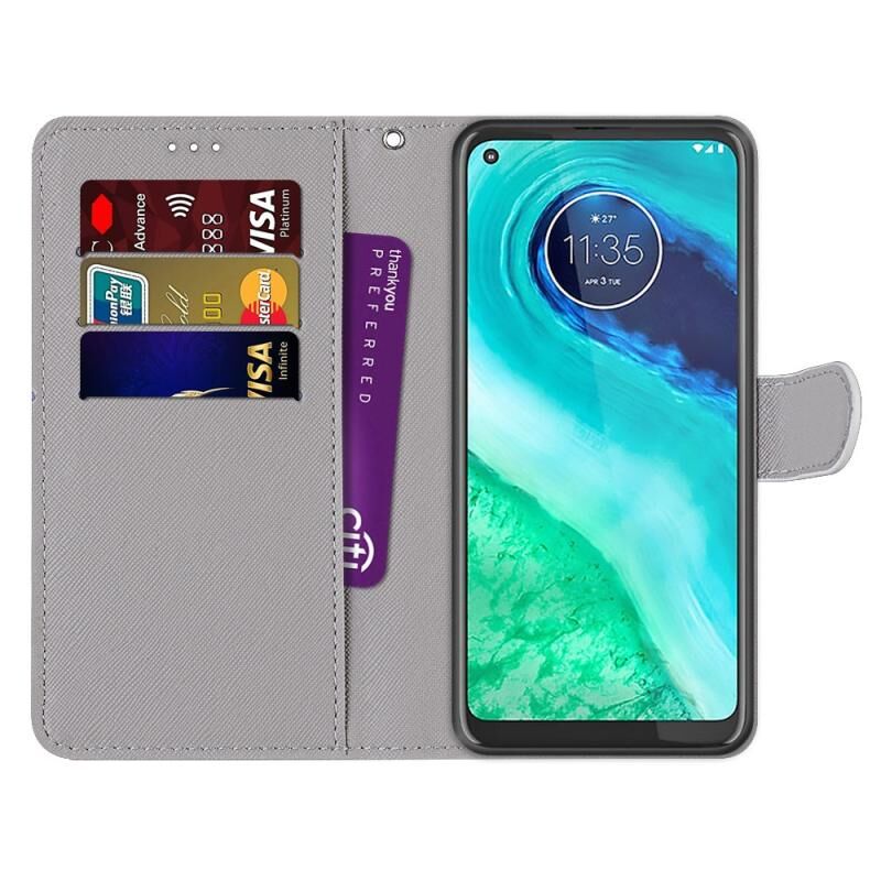 Θήκη για Motorola Moto G8 με έγχρωμο σχέδιο, υφή σταυρού, οριζόντιο άνοιγμα, από δερματίνη PU με βάση, θήκες για κάρτες, πορτοφόλι και λουρί (Πράσινο Λεμόνι)