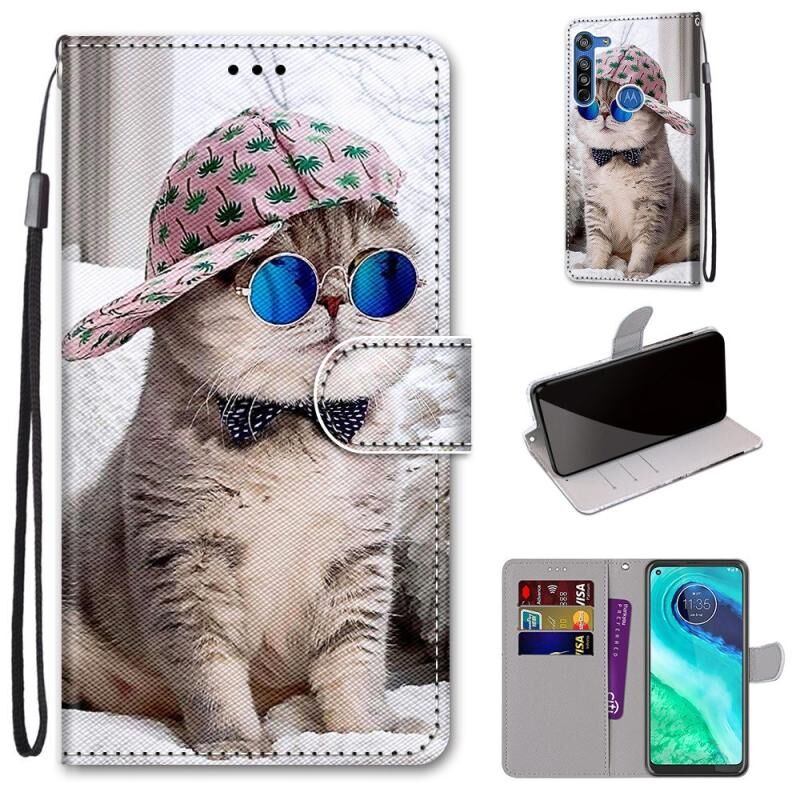 Θήκη για Motorola Moto G8 με έγχρωμο σχέδιο, υφή σταυρού, οριζόντιο άνοιγμα, από δερματίνη PU με βάση, θήκες για κάρτες, πορτοφόλι και λουρί (Πράσινο Λεμόνι)